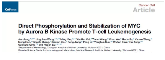 2 月 10 日,伯豪生物复工的首天,我们接到了来自武汉的好消息,我们的客户武汉大学医学研究院刘胡丹教授团队在 Cancer Cell(IF 23.9)上发表了题为“Direct Phosphorylation and Stabilization of MYC by Aurora B Kinase Promote T-cell Leukemogenesis”的重大研究成果,报道了 AURKB-MYC 正反馈调控轴在急性 T 淋巴细胞白血病(T-ALL)的发生发展中起着重要作用,间接干预 MYC 是治疗 T -ALL 的潜在新策略。