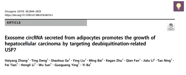 脂肪细胞外泌体 circRNA 通过靶向去泛素化相关的 USP7 促进肝细胞癌的生长