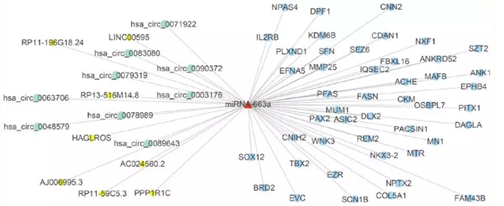 图 7  miR-663a-5p 参与调控的 ceRNA 网路图