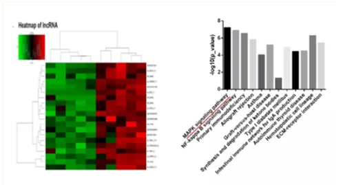 图 9   热图展示 SM 中的 lncRNA 差异表达及富集到 pathway 展示