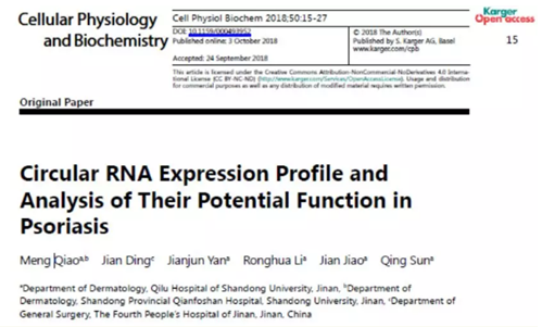 本文采用 ceRNA 芯片研究了 circRNA 的表达并分析了它们在牛皮癣中的潜在功能。研究共发现 4956 个 circRNAs(3016 个上调,1940 个下调,fc≥2 和 p <0.05)在牛皮癣中差异表达,其中 hsa_circ_0061012 在牛皮癣中表达上调。hsa_circ_0061012 的前五个 MRE 结合的 miRNA 靶基因富集分析结果显示前 30 go term 大部分都与牛皮癣有关,因此研究人员认为 hsa_circ_0061012 可能是牛皮癣的候选生物标志物。该研究结果展现了牛皮癣中 circRNA 的表达情况,为进一步研究 circRNA 在牛皮癣中的作用提供了新的理论依据。