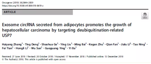 4.  外泌体 circRNA 通过靶向 USP7 促进肝细胞癌的生长