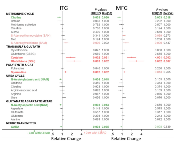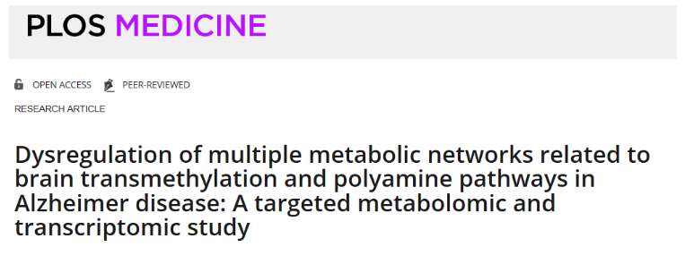 参考文献 Uma V. Mahajan, Vijay R. Varma,et al. Dysregulation of multiple metabolic networks related to brain transmethylation and polyamine pathways in Alzheimer disease: A targeted metabolomic and transcriptomic study. PLoS Med.2020; 17(1):e1003012. Epub2020/01/14