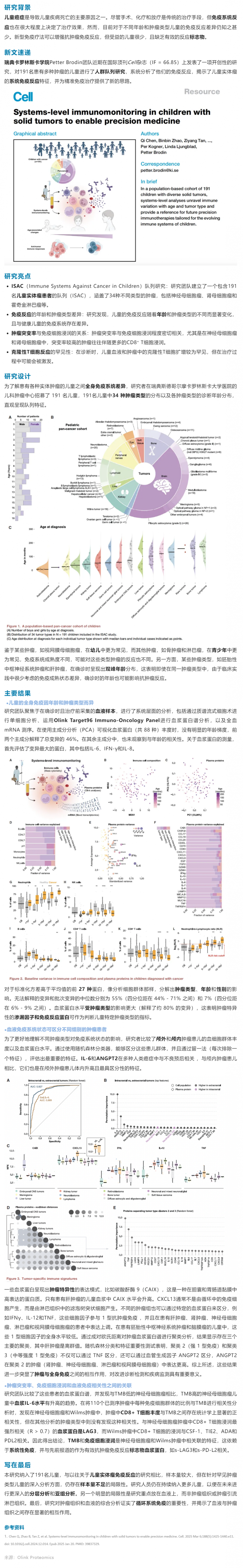 Cell|Olink 血浆蛋白组助力绘制儿童实体瘤系统免疫图谱