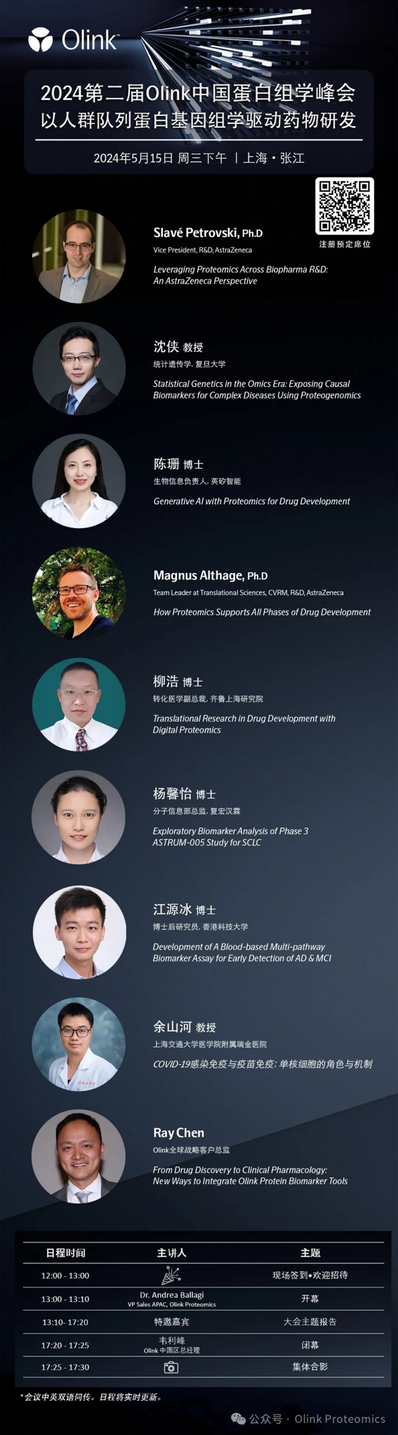 2024 第二届 Olink 中国蛋白组学峰会 | 以人群队列蛋白基因组学驱动药物研发