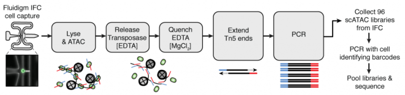 图 ATAC-seq 与 Fluidigm C1 单细胞平台整合的实验流程 [2]