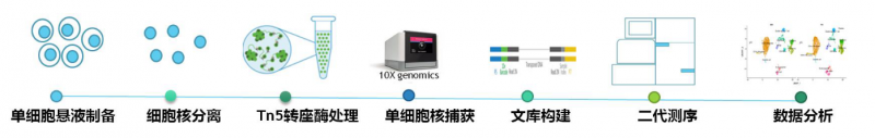 单细胞 ATAC-seq(Aaasay for transposase Accessible Chromatin with high throughput sequencing at the single cell level)是指在单细胞水平上检测开放染色质的方法。其原理为基于 Tn5 转座酶对片段化 DNA 和整合入活化的调控区域的高敏感性。目前,单细胞 ATAC-seq 技术可应用于肿瘤异质性、免疫微环境、神经科学、胚胎发育、细胞分化等领域的研究。