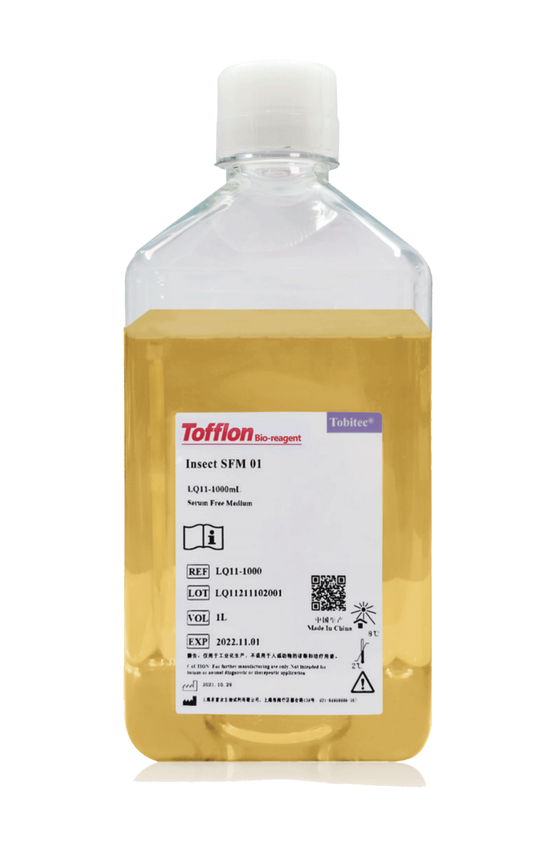 | lnsect SFM01 培养基 | LQ11, 1000mL(液体) | 无动物源、无蛋白、无血清 | Sf9、High five |
