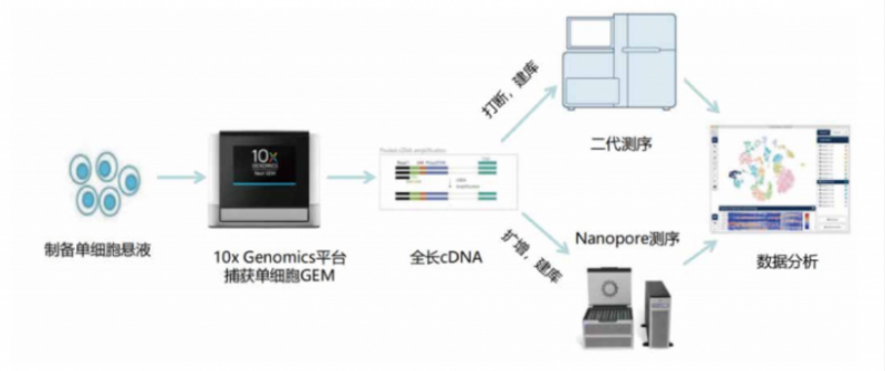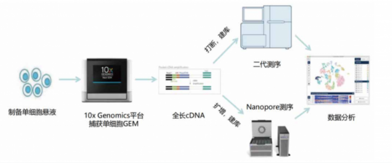 单细胞测序技术为基础科研、临床诊断、药物研发等领域提供了诸多全新发现视角。现阶段主流的单细胞测序,大多是基于 10X Genomics、BD Rhapsody 等单细胞捕获设备获得 cDNA 后进行打断、扩增、建库,并用二代测序分析基因的整体定量。然而,基因在不同组织、不同细胞亚群中会使用 mRNA 的不同转录本,同时也包括 InCRNA;此外 SNV、融合基因等结构变异也具有组织和细胞特异性,目前基于二代测序的单细胞数据局限于 3'或 5' 端的 100~150bp,因此较难满足这类需求:而传统的 Smart-seq 虽然可以实现全长转录本覆盖,但转录本结构分析需要经过组装且细胞通量较低,成本较高,研究单细胞水平的可变剪切仍然较为困难。