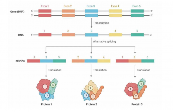 不过,由于细胞核里面的 RNA 大多为初始 RNA,包含有较多内含子,而从初始 RNA 加工为成熱 mRNA 的过程大多发生在细胞质中,因此,抽核类的项目并不太适用于单细胞全长测序。虽然在 2022 年 7 月份一篇 Nature Biotechnoloey 的文章是对人脑抽核后的单细胞样品进行三代全长测序,不过由于拿不到成熟 mRNA,文章是站在了特定基因在不同亚群的外显子保留这样的科研角度统计规律(如下图)。文章角度非常新颖,也是科研界首次用单细胞全长测序发现,人脑中某些基因在不同亚群中使用不同的外显子组合,生成多种编码蛋白。不过,由于最终拿到的仍旧是细胞核内的 RNA,后续还需要大量验证工作,因此抽核后做单细胞全长测序的临床转化价值较小。所以,单细胞全长测序的项目最适宜采集新鲜样品制备细胞悬液,捕获成熟 mRNA 开展后续验证工作。