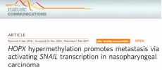 Ren X , Yang X , Cheng B , et al. HOPX hypermethylation promotes metastasis via activating SNAIL transcription in nasopharyngeal carcinoma[J]. Nature Communications, 2017, 8:14053. IF=12.35